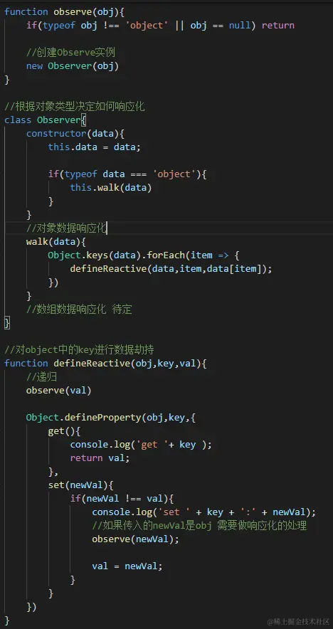 2. Observer:数据劫持响应(分辨是传入数据是对象还是数组)。
