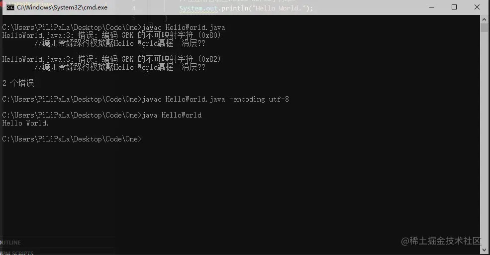 然后让我们开始编译这个HelloWorld.java文件吧。