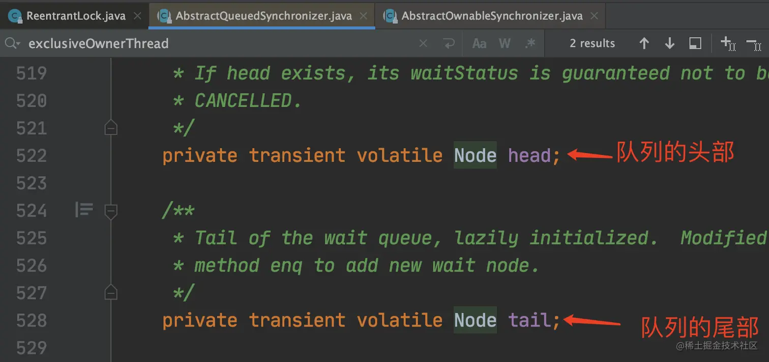exclusiveOwnerThread:当前获取锁的线程是谁