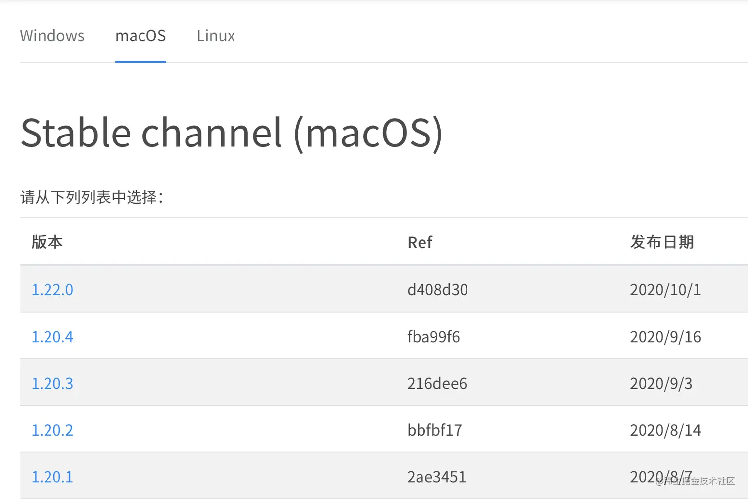 Stable channel 代表稳定版本,我们选择其中一个,注意和其他开发人员版本统一即可,便于团队的代码管理。
