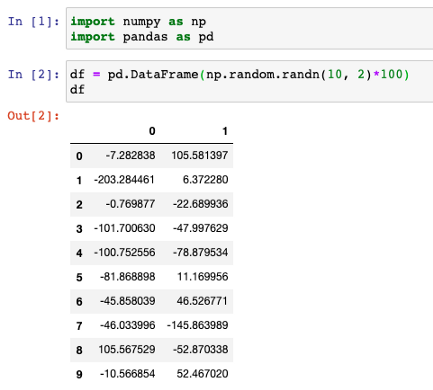 df = pd.DataFrame(np.random.randn(10, 2)*100)