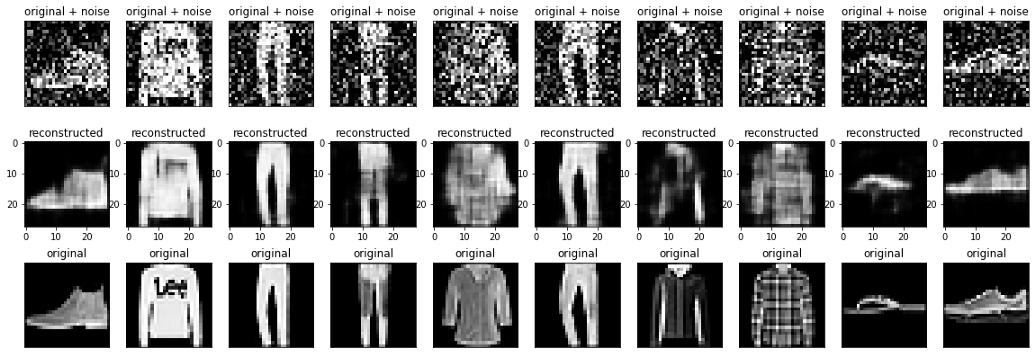 你已经构建了一个自编码器模型,它可以成功地清除非常嘈杂的图像,这是它以前从未见过的(我们使用测试数据集)。