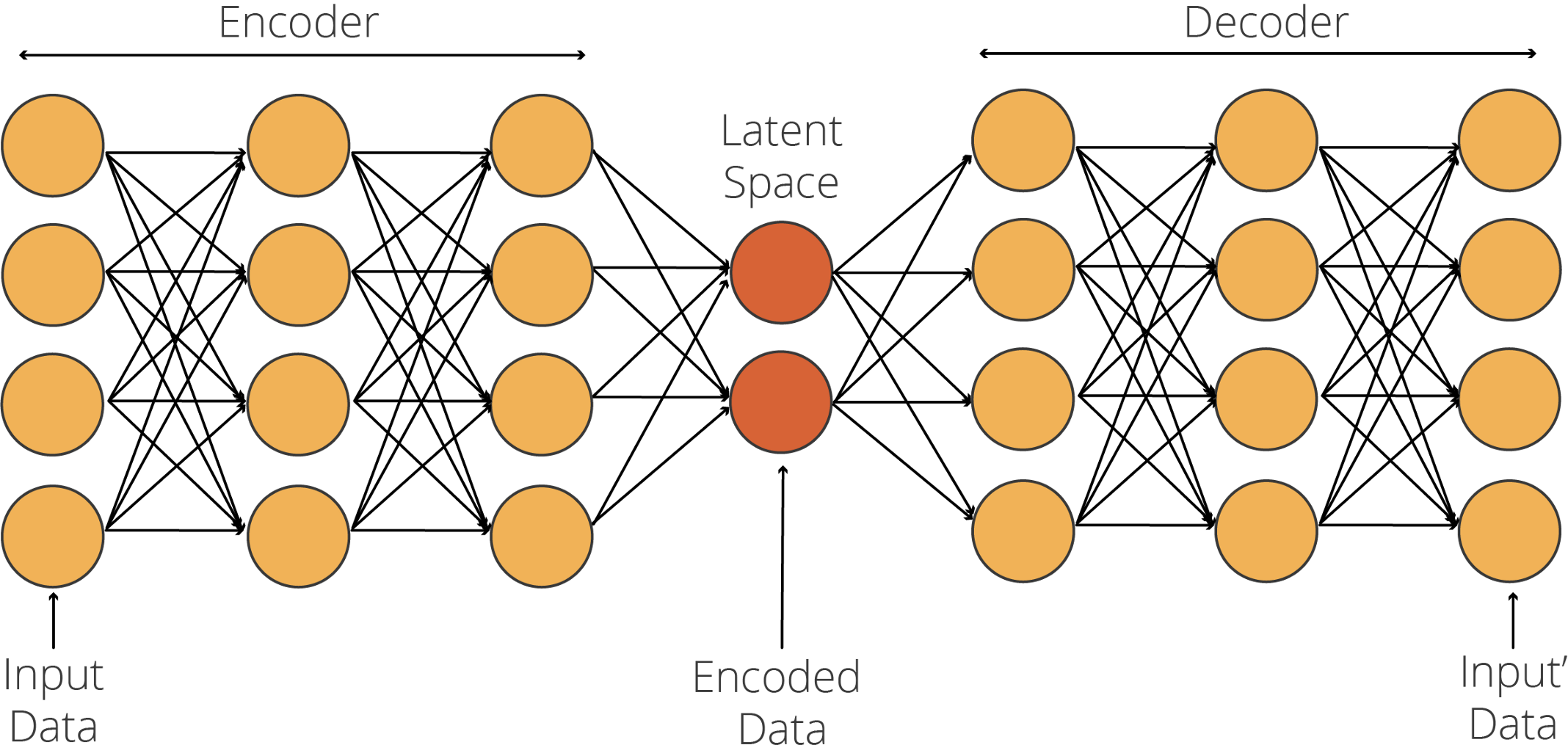 自编码器由一个编码器网络组成,该网络接收特征数据并对其进行编码以适应潜在空间。解码器使用该编码数据(即代码)将其转换回特征数据。在编码器中,模型学习的是如何有效地编码数据,以便解码器能够将其转换回原始数据。因此,自编码器训练的关键是生成一个优化的潜在空间。