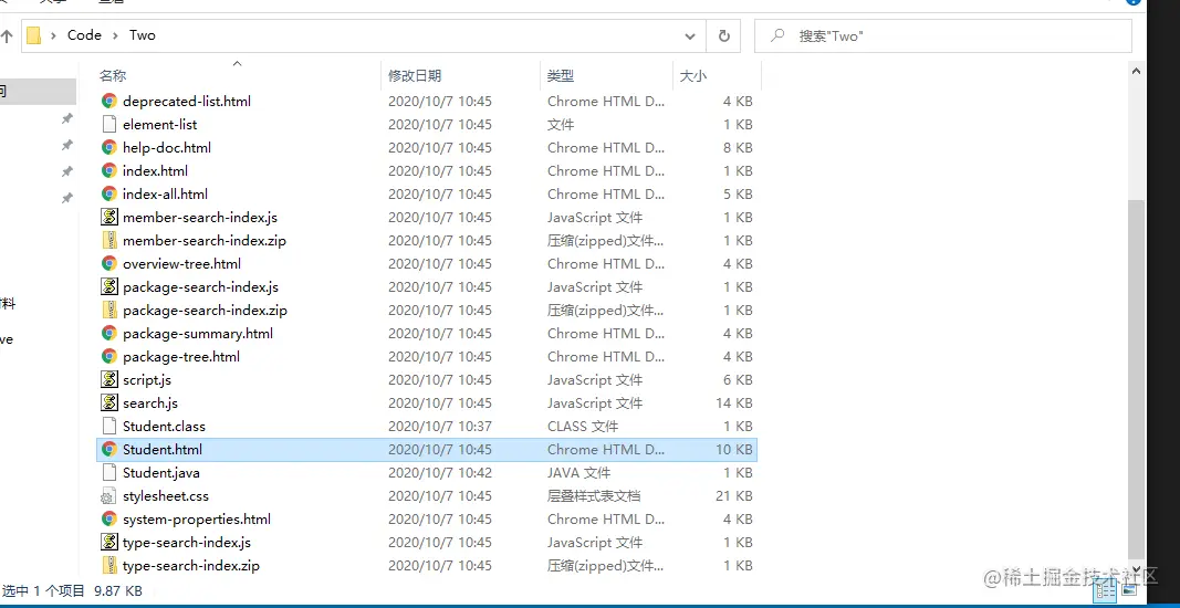 可以看到我们的代码目录里生成了许多的文件,这就是我们学生类的文档。
