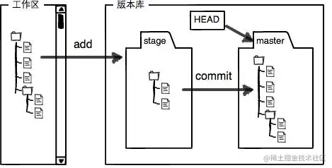 - 我们存放修改的地方,所有的修改都必须缓存到这里。当我们执行提交命令时,实际上就是把暂存区的内容提交到HEAD对应的分支上。