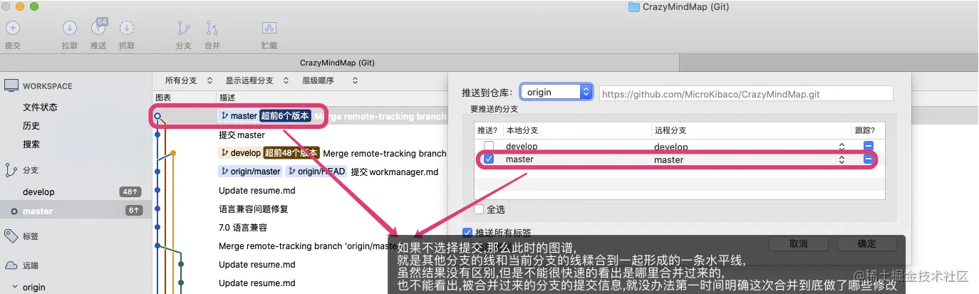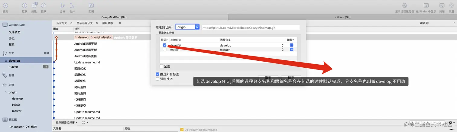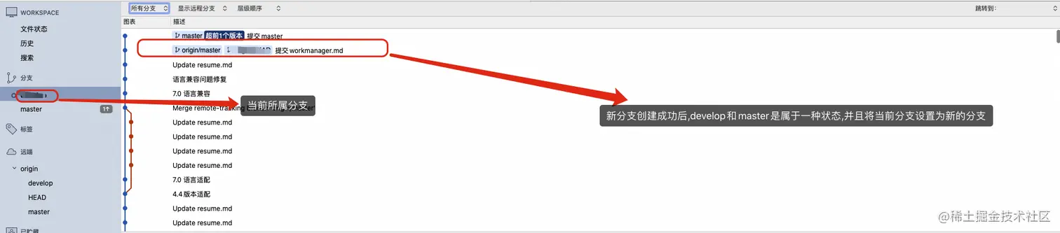 *master,分支*develop)