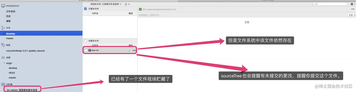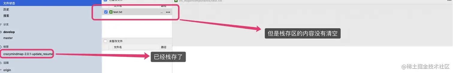 - 此时 text.txt 还没有被 Git 跟踪管理,所以它默认不会被贮藏