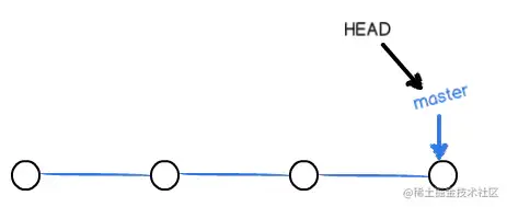 - 一开始时,我们只有一个master分支,也只有一条时间线,所以,我们的HEAD指向master,然后master又指向我们的提交线。