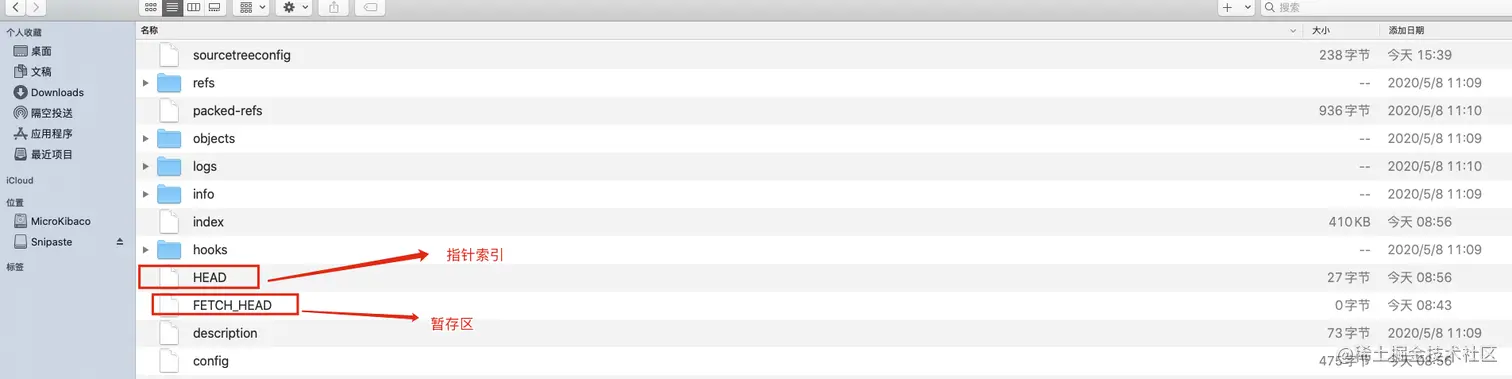 - 打开.git目录,Git版本库中有许多文件,其中最重要的就是称为index(或者stage)的暂存区,还有HEAD指针。而其他分支等信息存放在refs文件夹中。