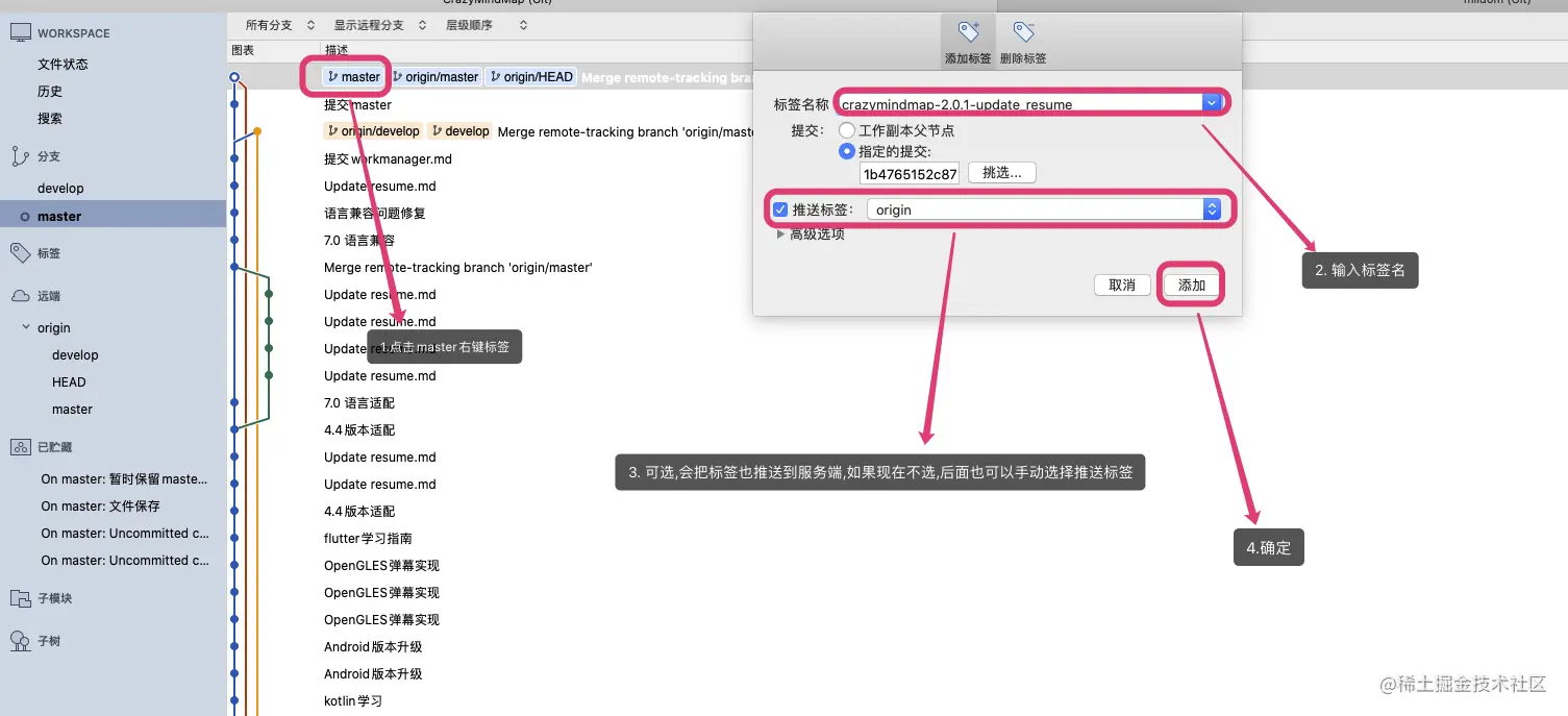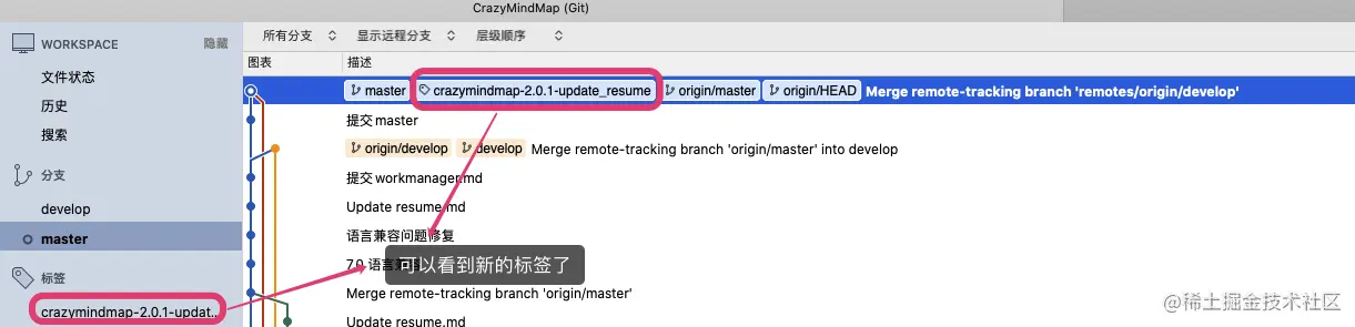 5.1 master合并完之后,就可以发布新版本了,我们使用tag标签来表示版本。