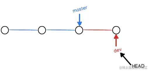 - 在dev上的提交,仅仅只是dev向前移动了一步,而master还在原来的地方没动