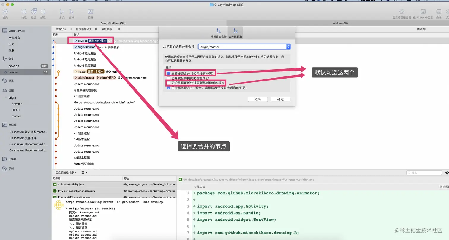 Merge,,以保持有完整的合并记录。 - 避免低级空指针错误