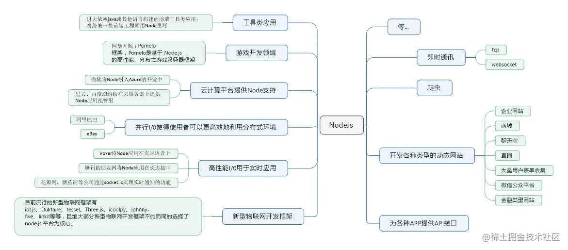 - Node.js 是一个 Javascript 运行环境(runtime)。它让 JavaScript 可以开发后端程序, 它几乎能实现其他后端语言能实现的所有功能。
