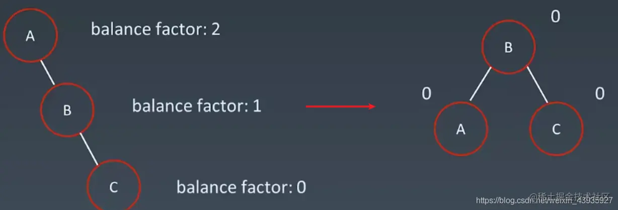 - 平衡因子 = 左子树高度 - 右子树高度(有时相反)