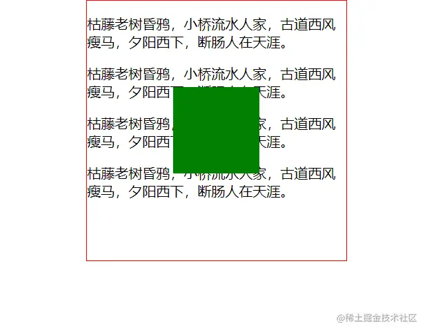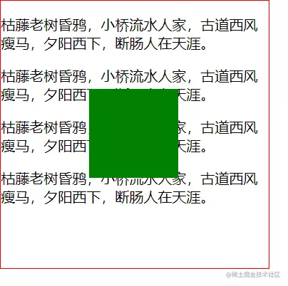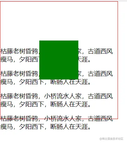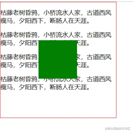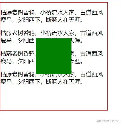 - 相对定位会在移动前的位置留下一个透明分身,该分身会干扰其他元素。