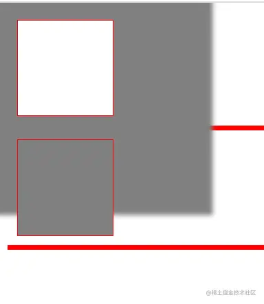 box-shadow: 1px -2px 3px 100px red:右偏1px,上偏2px,模糊3px,外放100px,红色,阴影为外放。 -