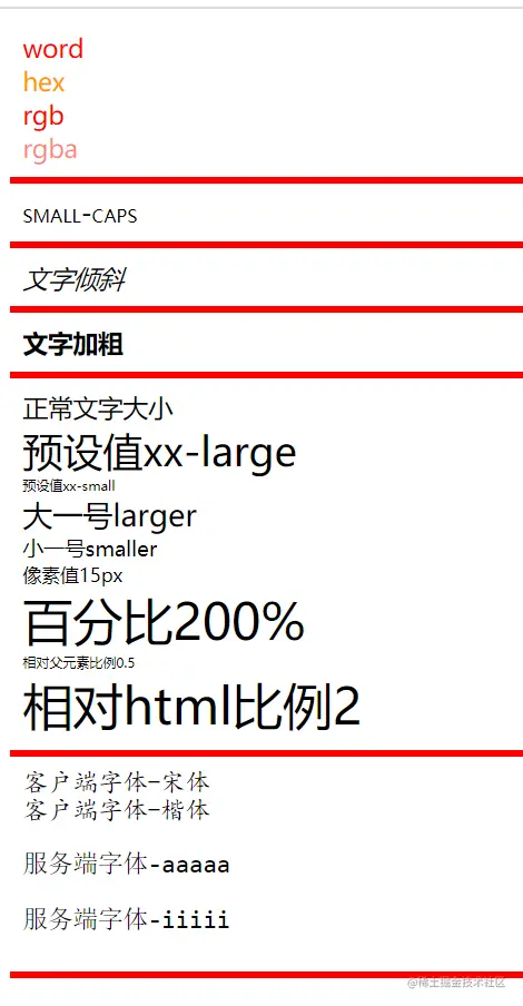 - 样式优先级:对同一个标签的设置的相同CSS属性会覆盖,不同CSS属性会层叠: