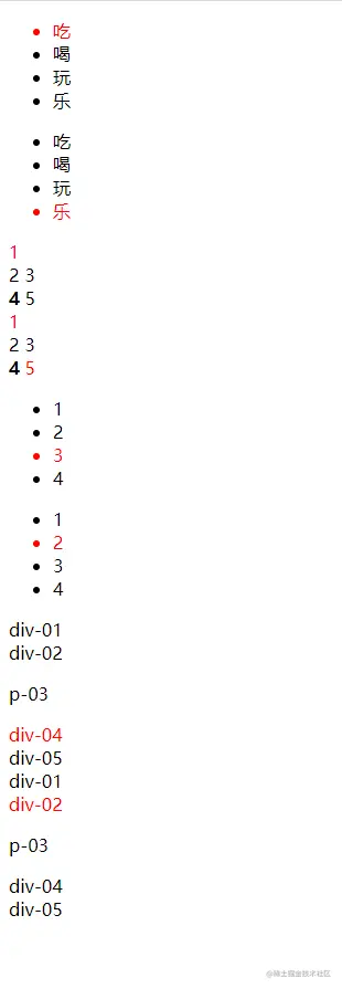 s1, s2{}:群组选择器,将多个选择器通过逗号分隔,同时设置一组相同样式。s1 s2{}:后代选择器,选择s1范围内的所有s2。s1 > s2{}:子类选择器,选择s1范围内的所有s2,要求s2只能是子标签。s1 + s2{}:第一小弟选择器,s1相邻的下一个同级标签是s2,则被选中。s1 ~ s2{}:弟弟们选择器,选择s1后面的同级所有s2,不在乎是否相邻。