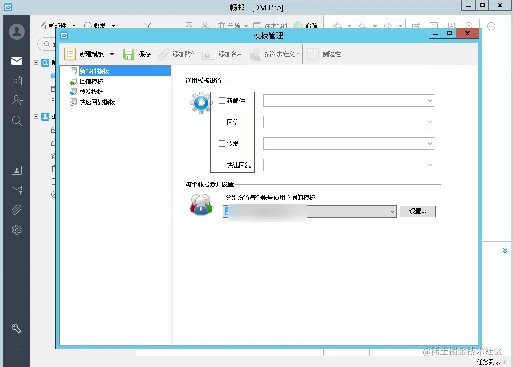 单独账号设置新邮件/回信/转发/快速回复默认模板