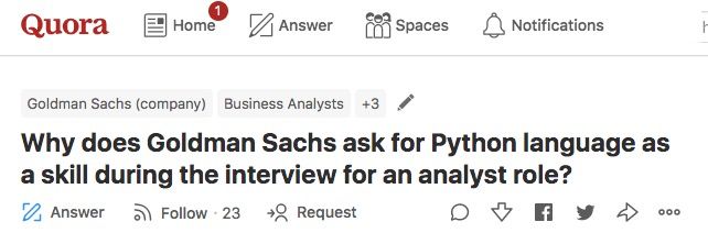 有人在Quora上爆料,在高盛的Analyst面试中,Python成为重点考察的技能。
