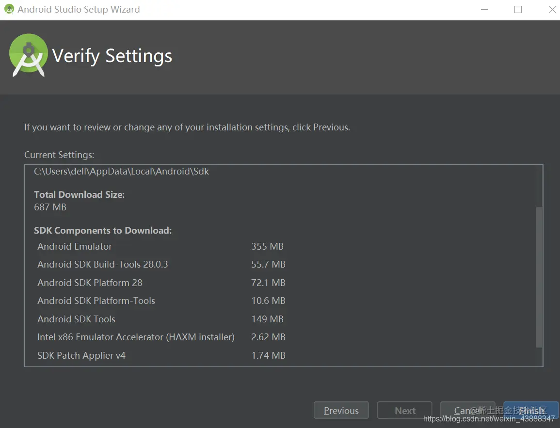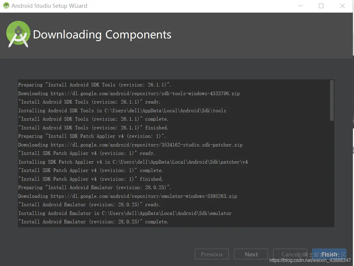 下载 android studio 所需要的资源 选 Finish,等待下载完毕