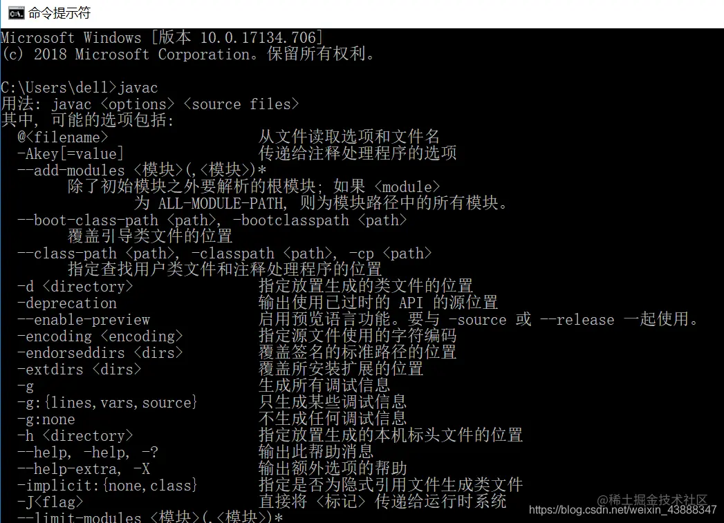再输入 javac 弹出