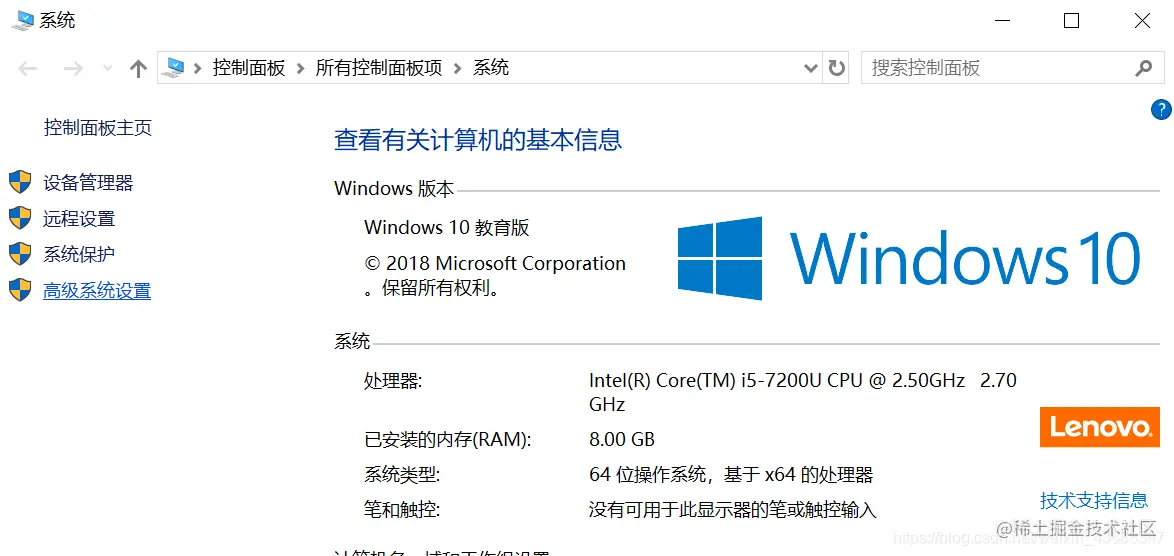 右键此电脑 / 计算机,点击属性,点击高级设置