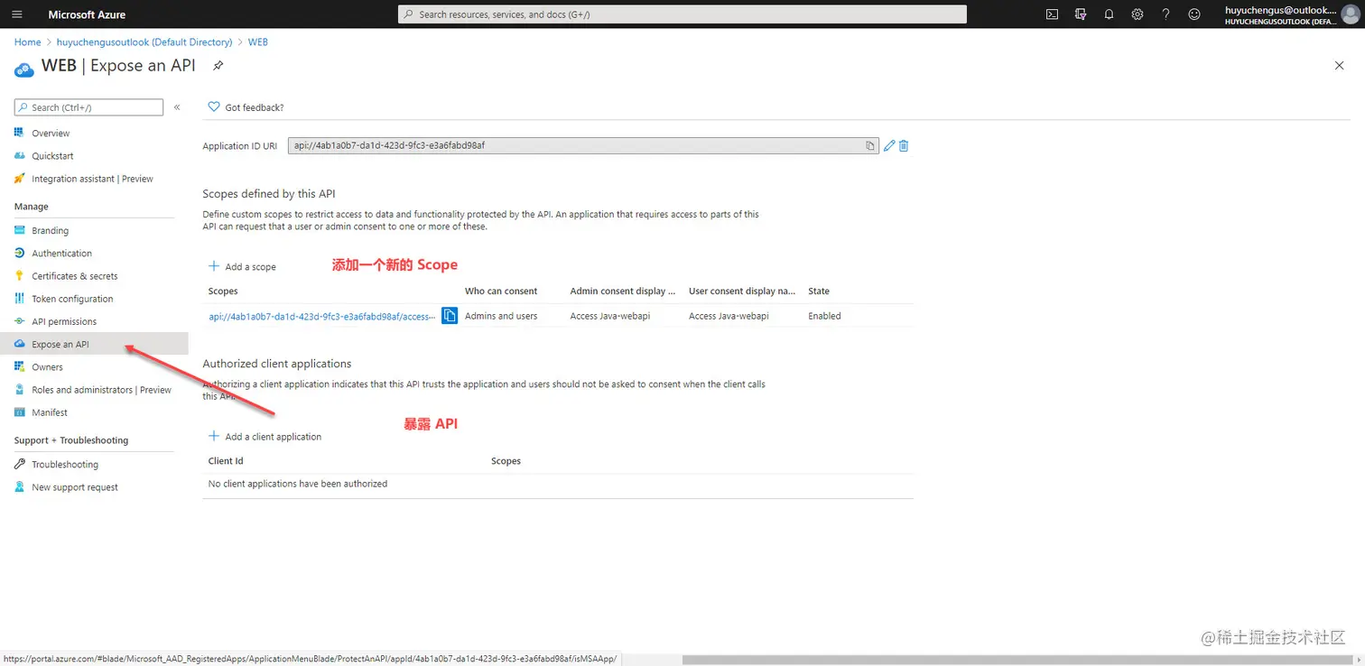 因此 scope 的配置就是 api://client_id/ .default.