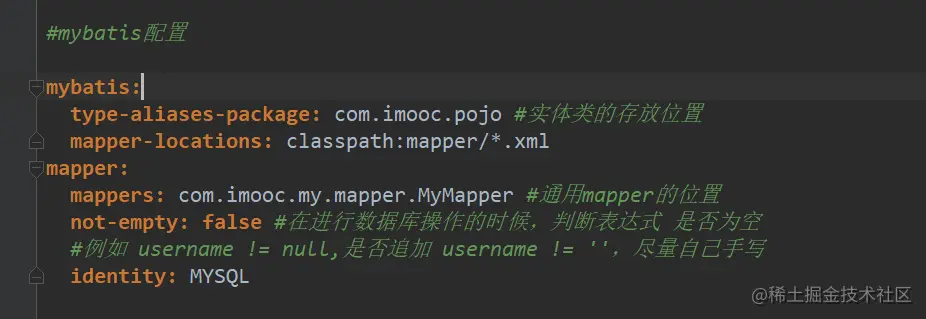 mappers: com.imooc.my.mapper.MyMapper #通用mapper的位置