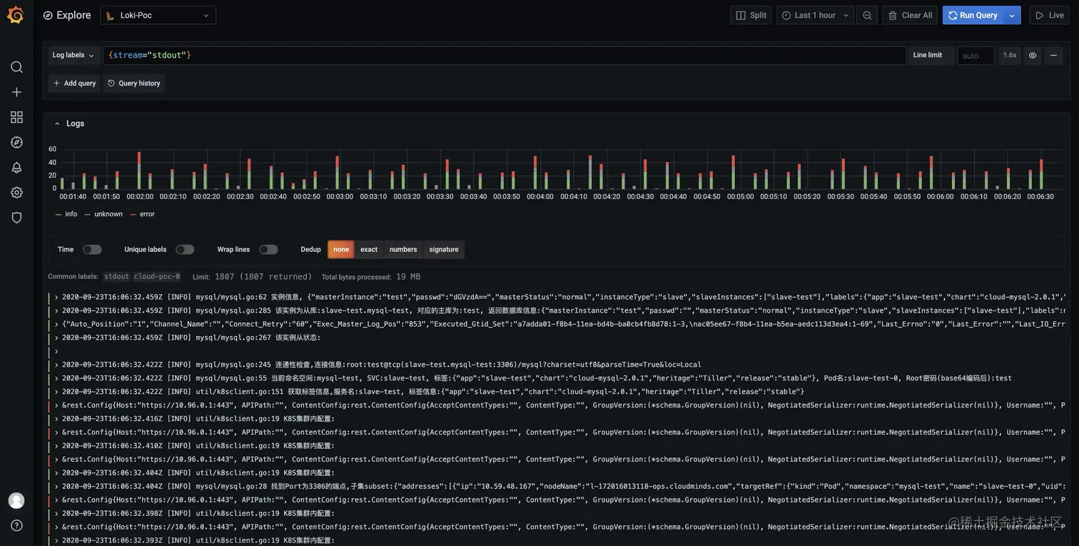同理,Grafana的数据源,我们也要切换到Loki Gateway的地址,然后在Explor上查询日志验证是否正常