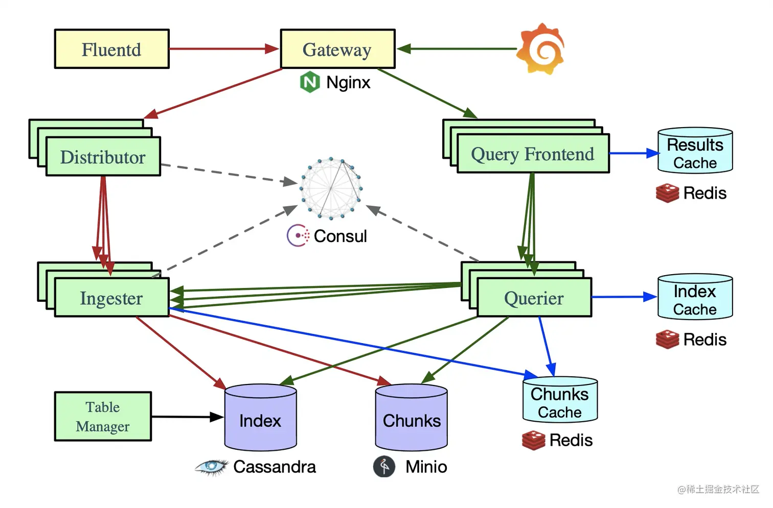 | Consul | 1 | Loki 组件状态和哈希环存储 |