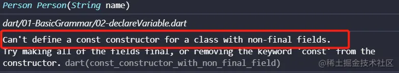 就是说Person这个函数里的构造函数是const意味着里面的所有成员必须使用final进行修饰的
