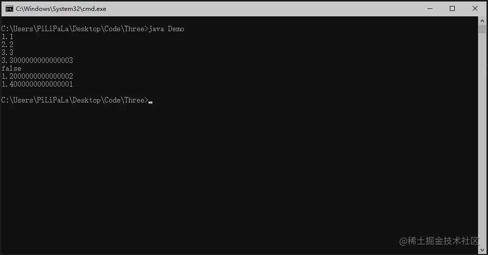 可以看到数据特别的长,但是数据类型是有长度限制的,double 数据类型是双精度、64 位、符合IEEE 754标准的浮点数。这就会导致我们在进行运算时实际本质上就是不精确的。