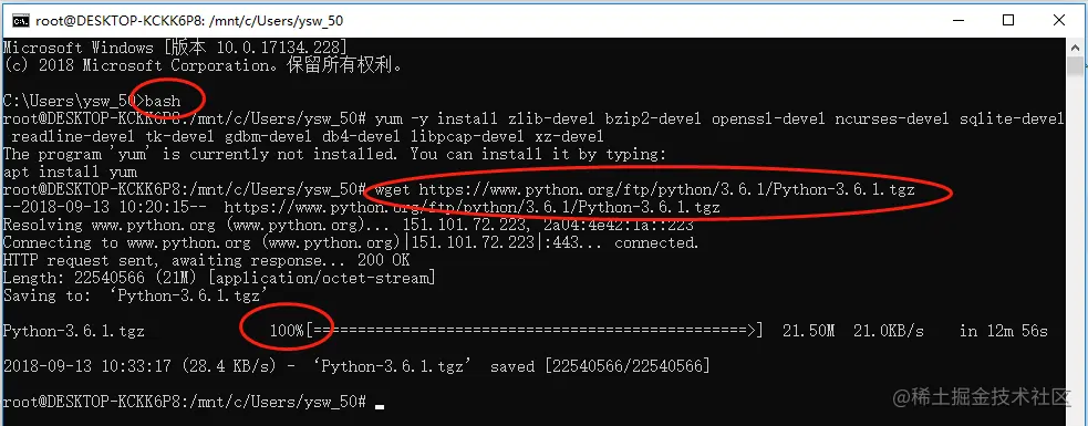 输入下载命令:wget www.python.org/ftp/python/…