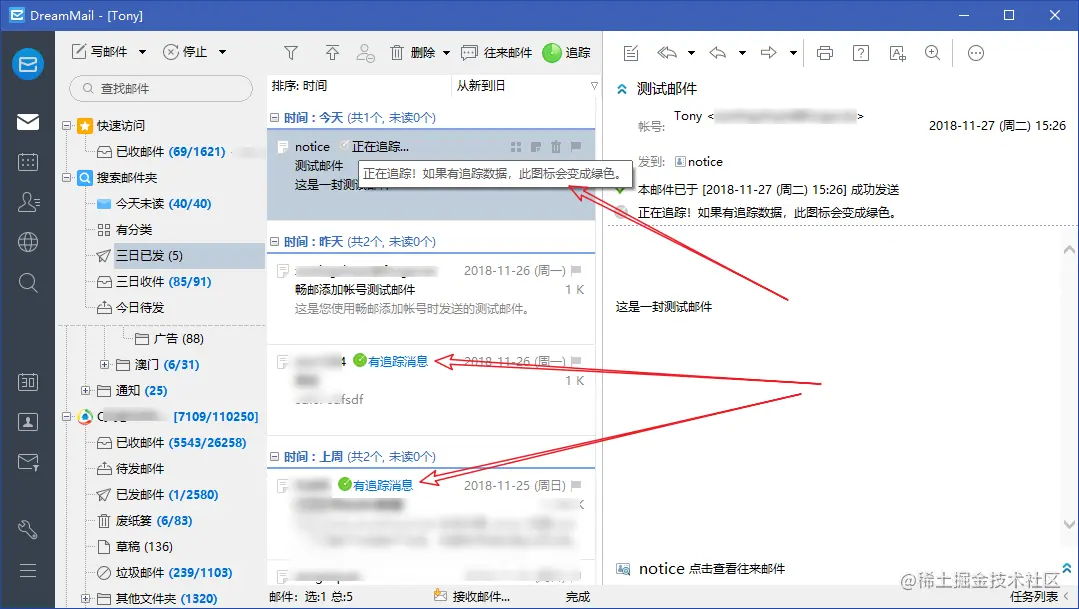 追踪信息在邮件正文上方显示(见下图)
