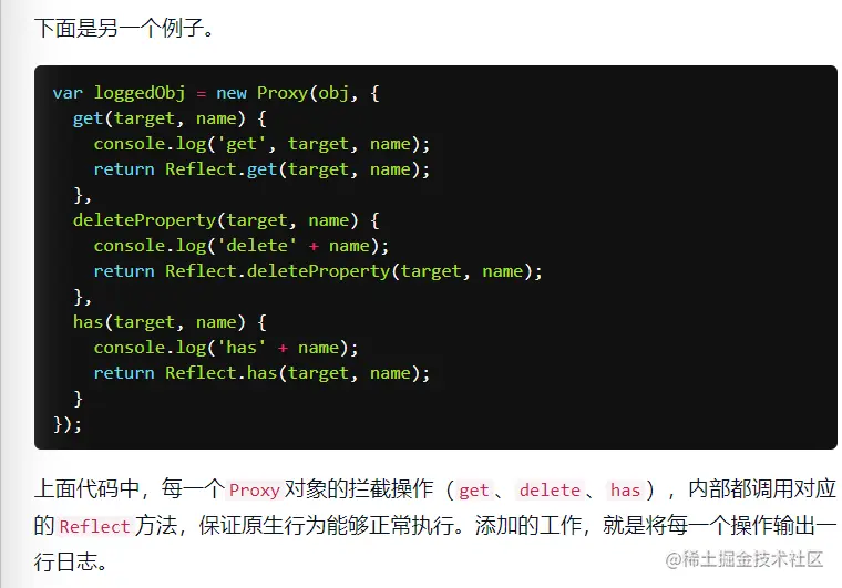 对ES6有一定了解的朋友应该知道,在对一个对象使用Proxy时,如果需要默认行为,就离不开Reflect,像这样: