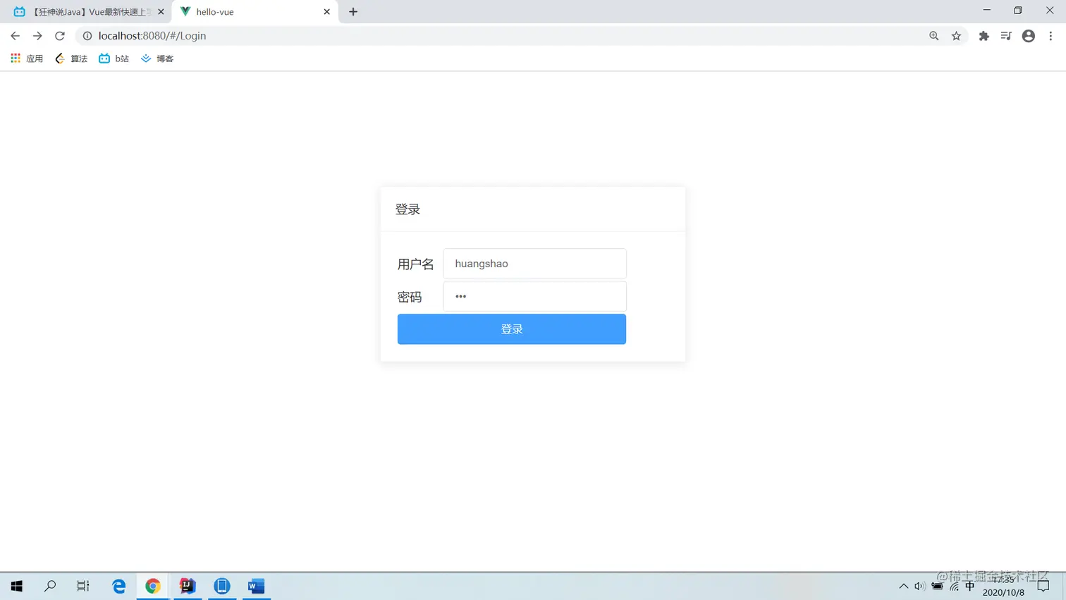 //alert(JSON.stringify(this.user))//可以直接把this.user对象传给后端进行校验用户名和密码