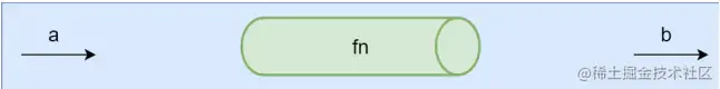 我们使用纯函数和柯里化很容易写成洋葱代码 h(g(f(x))),洋葱代码的嵌套问题使得我们的维护更加困难。这与我们选用函数式编程的开发初衷是相违背的,在这种情况下函数组合的概念就应运而生。函数的组合可以让我们把细粒度的函数重新组合生成一个新的函数,其中一个重要的概念就是数据管道。下面这张图表示程序中使用函数处理数据的过程,给fn函数输入参数返回结果b,可以想象a数据通过一个管道fn得到b数据。