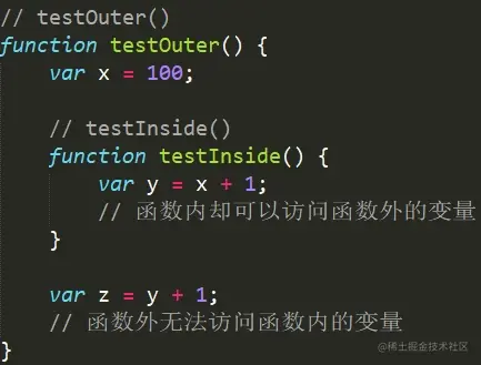 (4)函数外无法访问函数内的变量,函数内却可以访问函数外的变量。
