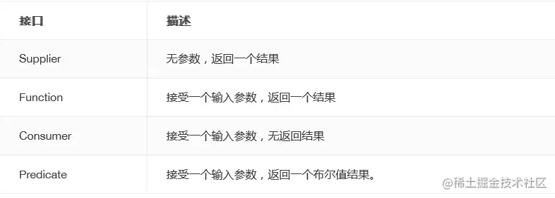 在java8中新增了很多 函数式接口 。在java.util.function包下。使我们使用lambda接口更加方便。下面列举常用接口。