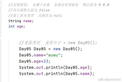 //实例变量: 从属于对象 如果没有初始化 默认值为 0 0.0
