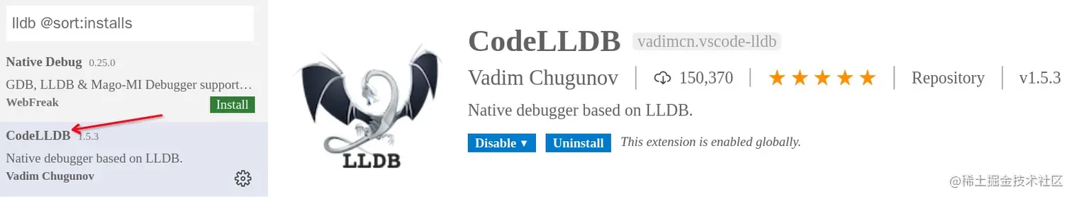 安装lldb插件,不能以安装数排名安装Native Debug,直接安装CodeLLDB即可。