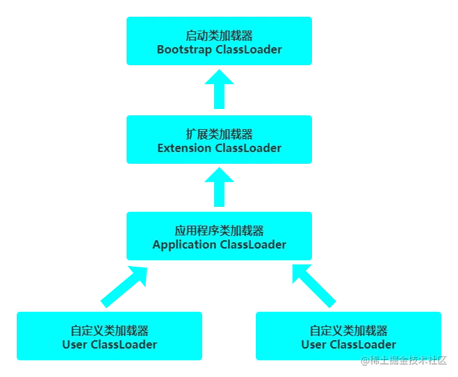 - 如果没有,则从 JVM 的 Bootstrap 类加载器加载;