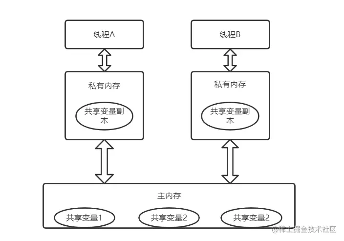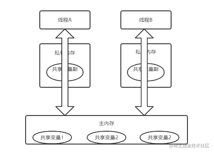在线程执行的时候,首先会从主内存中read变量值,再load到工作内存中的副本中,然后再传给处理器执行,执行完毕后再给工作内存的副本赋值,随后工作内存再把值传回给主内存,主内存中的值才更新。