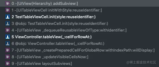 通过添加 -[UIView addSubview:]的Symbolic BreakPoint的断点,来获取TableViewCell 添加 contentView的具体时机和调用堆栈。