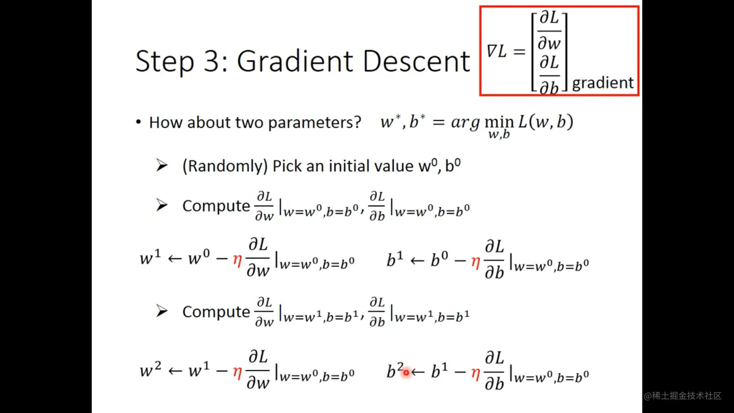 此时更新的参数变成了两个,一个是w,一个是b。但是“下山”过程是一样的。