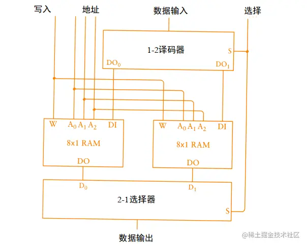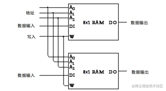 两个 8*1 RAM 结合一下就能表示存储 8 个独立的 2 位数据。