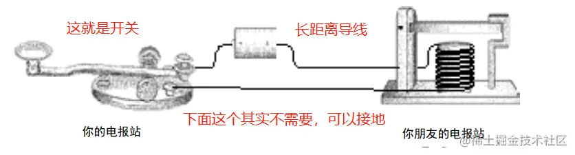 如果要双向通信,就再搞一个反过来部署就好了,这就是电报机了。