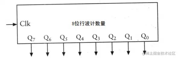 从 Q3 开始每一列从下往上看,是不是 0000、0001、0010.... 这就是计数器,把 8 个集成一下放在黑盒中,就构成了 8 位的计数器。