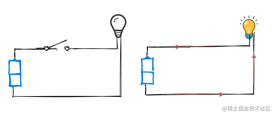 让我们再回到之前的电池电灯图中,这次搞两个开关。